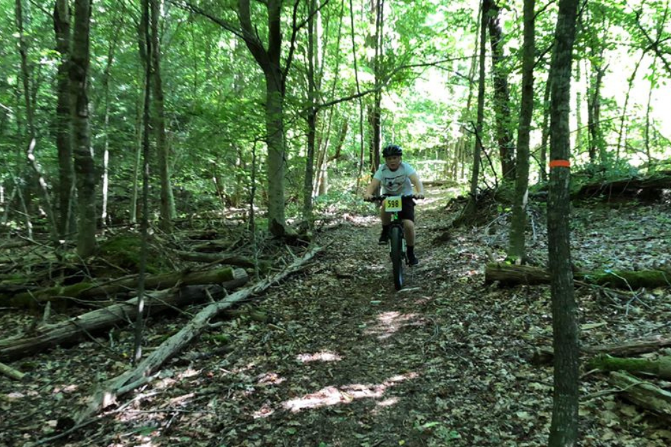 Home to Levi Jackson Wilderness Road Park, the Broken Spoke is a 5.5 mile loop that winds up and down through the woods around the London-Laurel County Fairgrounds. The trail is designed for both mountain bikers and hikers. There are tons of turn and technical features with rooty sections, rock sections. The trail ends with a half mile of switchbacks climbing back up to the parking lot.